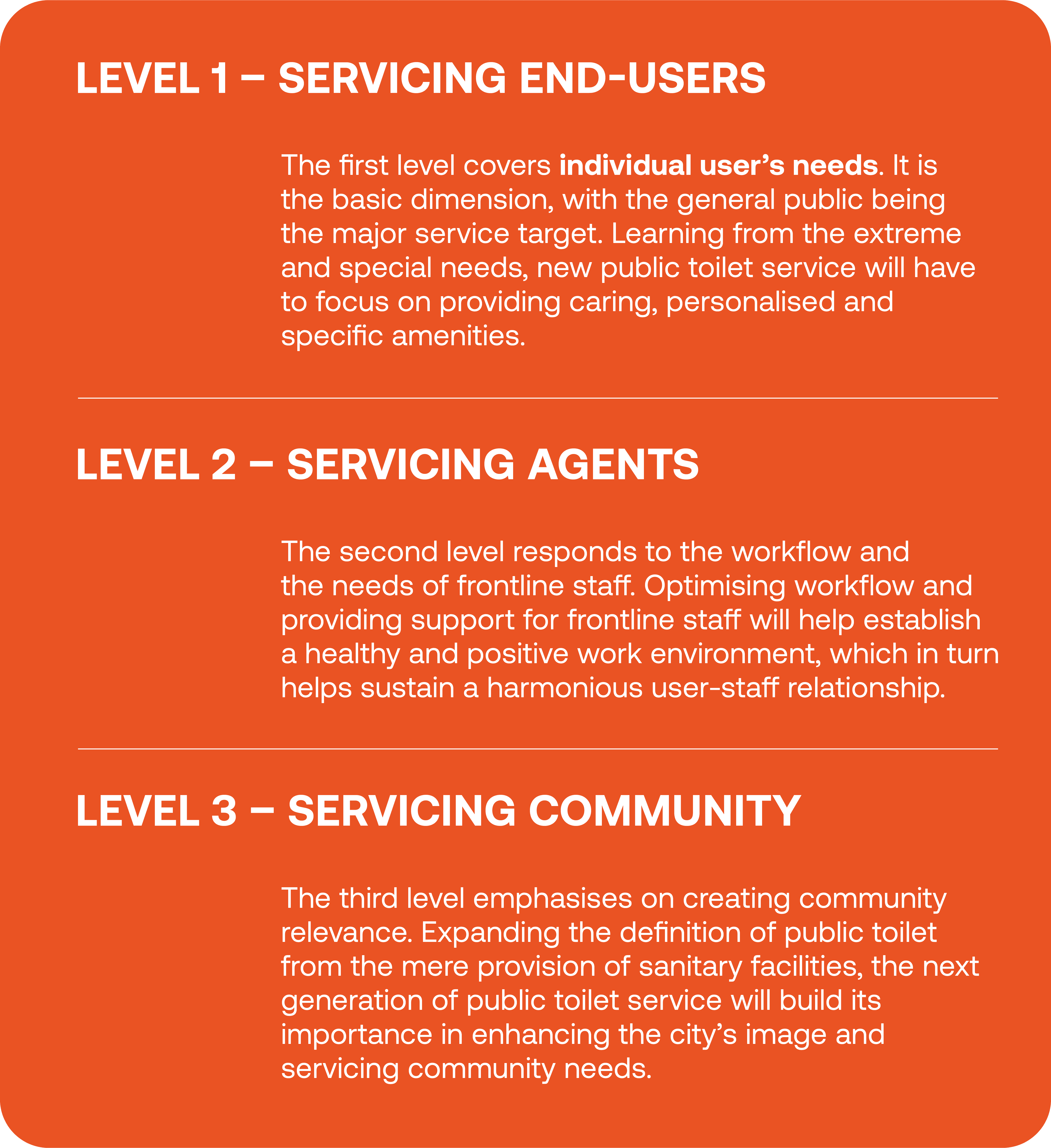 "Public toilets are more than facilities for meeting basic human needs; instead, they should be designed as a holistic public service providing optimal and inclusive experiences for end-users."